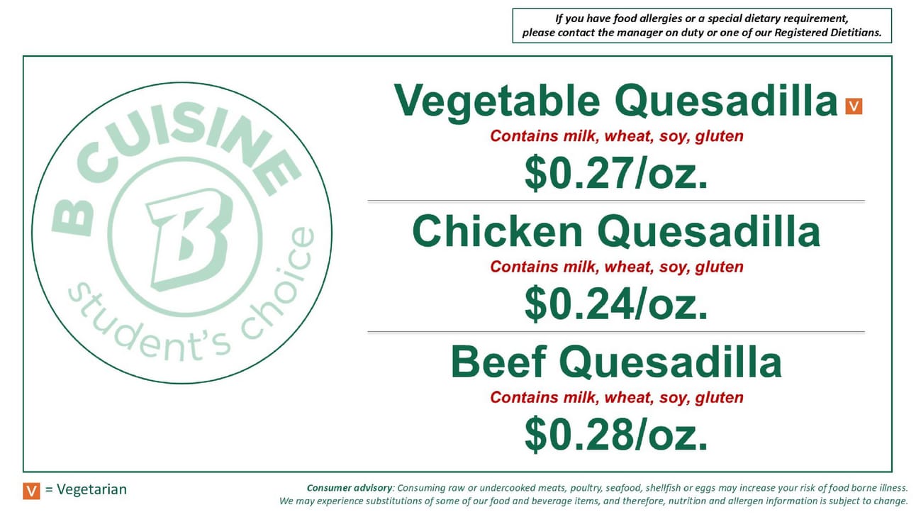 menu(s) subject to change