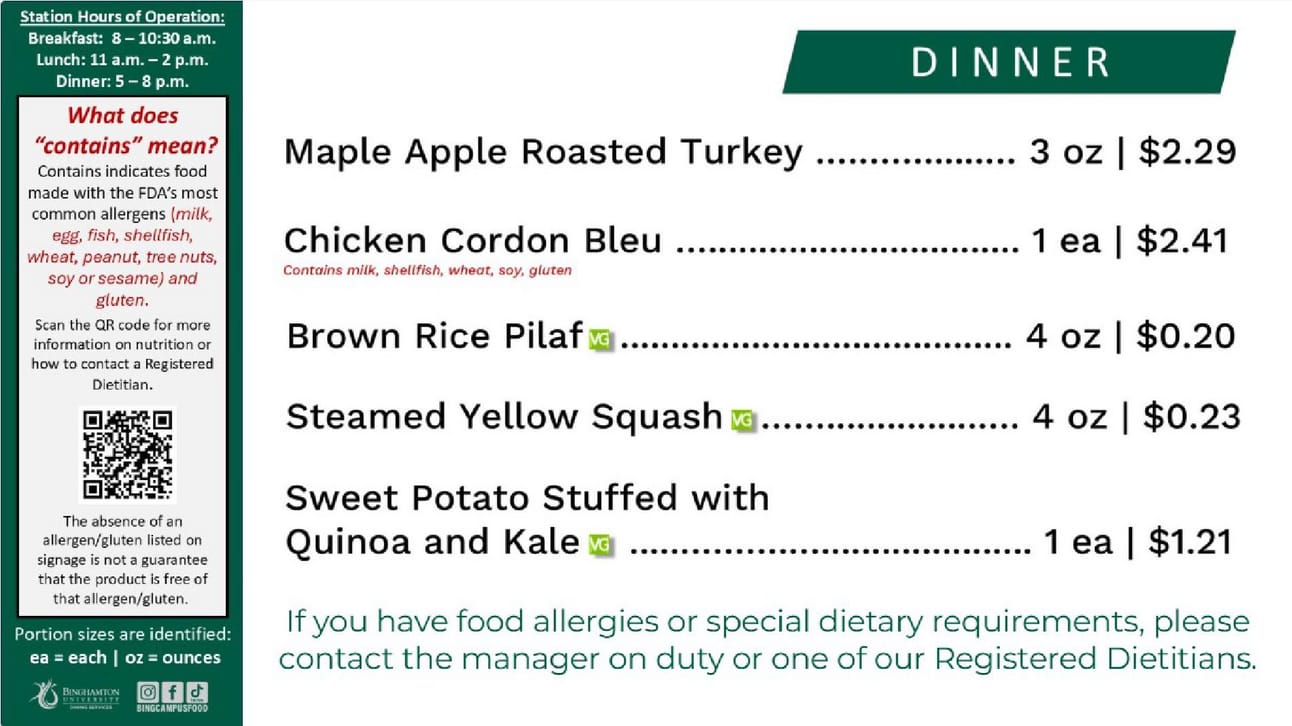 Here’s is the menu for tomorrow [February 25] at the Appalachian Dining Hall menu! Take a look and see if anything catches your eye—then stop by and enjoy your meal!